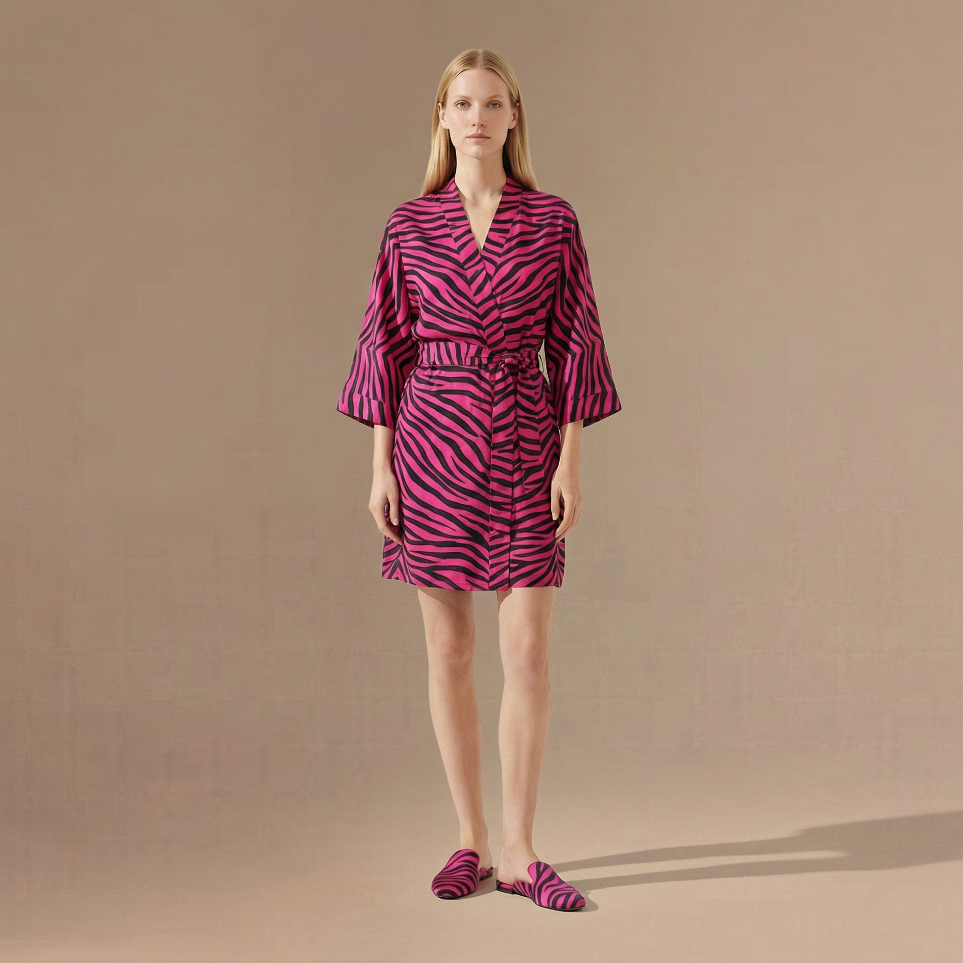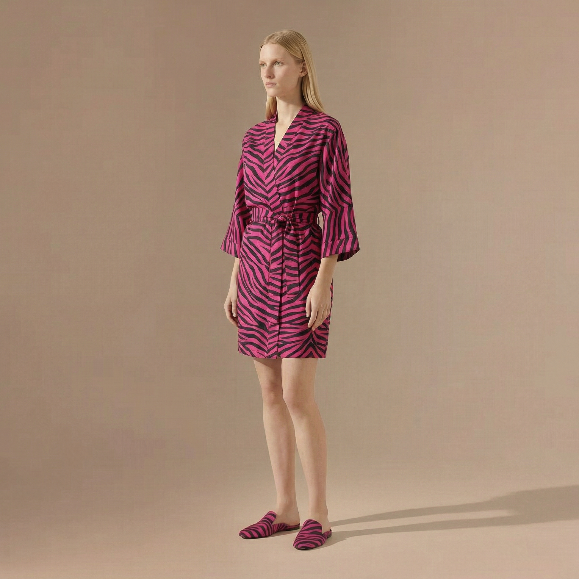 - Coupe : Ample et confortable avec une longueur courte aux genoux, parfaite pour un peignoir kimono