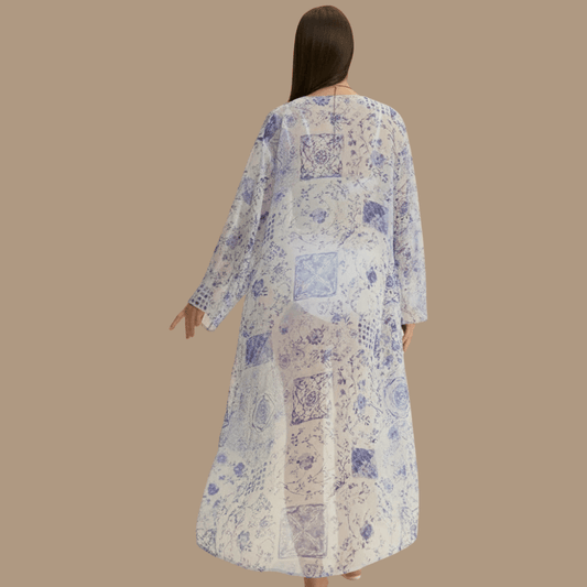 Peignoir Kimono Long à Motifs